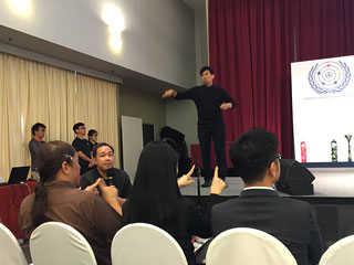 ![]() 今回の通訳チームは、フィリピン、マレーシア、 シンガポールの、ろう者と聞こえる人が混じった 国際色豊かな混成チームでした。 |