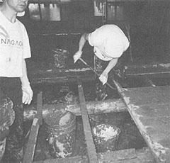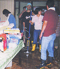Members of the Deaf Association and of the sign language study groups got together and helped to clean mud from the houses. Inside houses, mud covered tatami mats and wooden floors were all taken away and now people are waiting for the under floor to dry. Then new wooden floor and tatami mats will be put in.