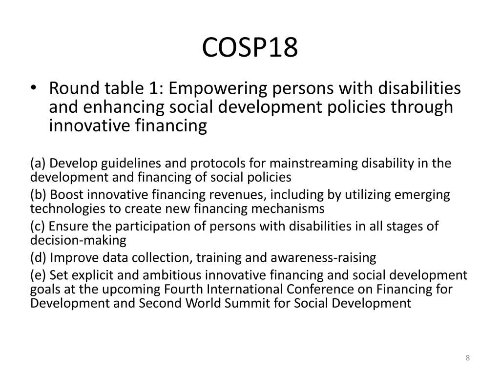 Activity Report of the UN CRPD – COSP18 and Side Events
