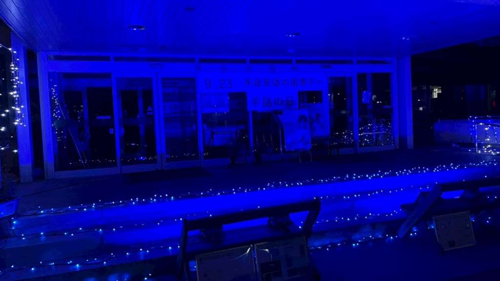 おかげさまで、昨年度を大きく超える448市区町村862か所(2025年12月現在)のブルーライトアップおよび、手話言語の国際デーに関する展示企画等の実施報告をお寄せいただきました。その中でブルーライトアップや展示企画等の写真をご提供いただいたところを、下記の通りご紹介いたします。