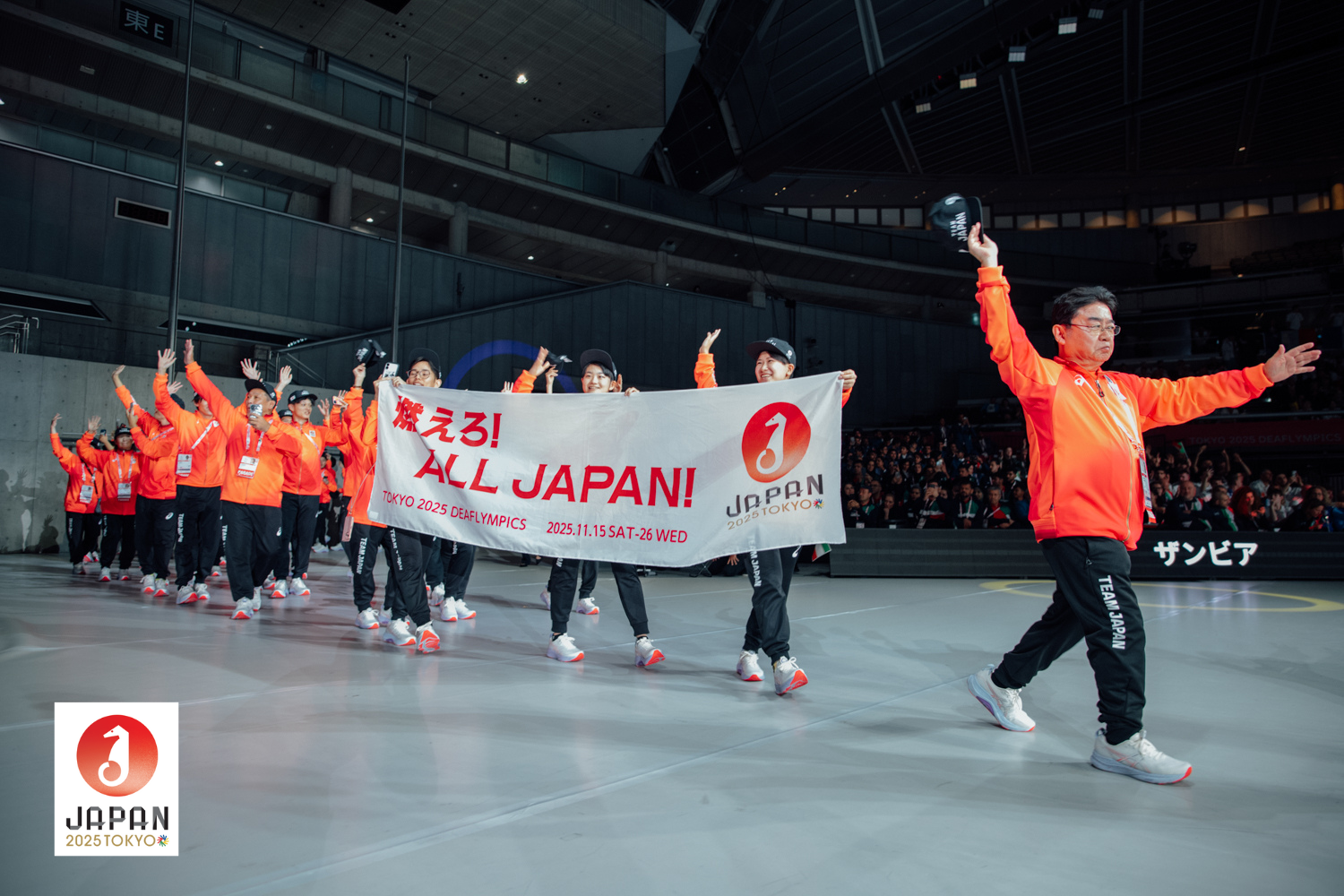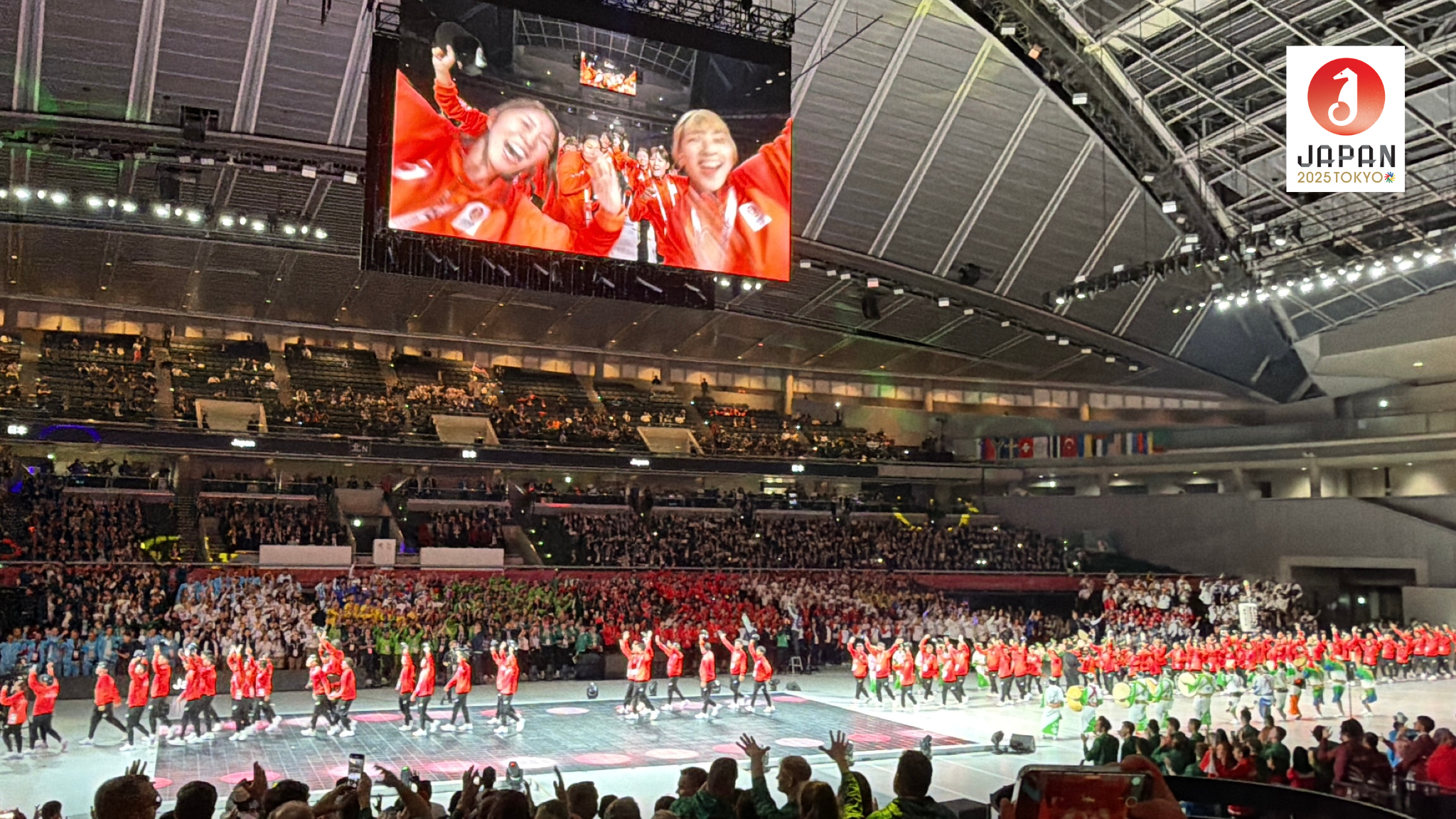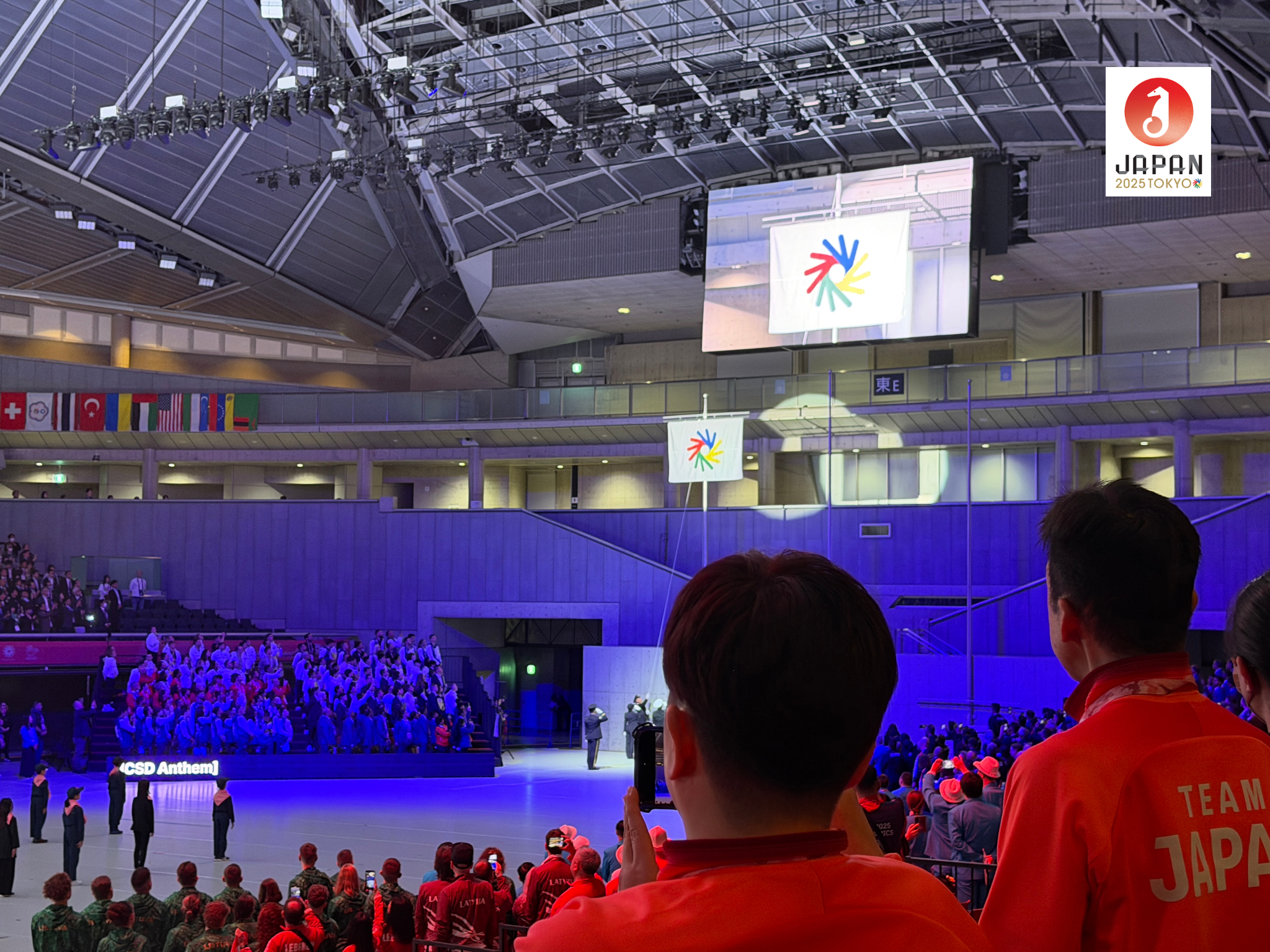 2025年11月20日 / 最終更新日時 : 2025年11月20日 稲葉智子 お知らせ 【開会式】11月15日 東京体育館 ■開会式 日本選手団は総勢で東京体育館の開会式に出席し、多くの観客に見守られながら 堂々と行進しました。 赤色のユニフォームを身にまとい、競技への熱い思いを胸に、 選手たちは笑顔で歩みを進めました。 先頭には旗手・小倉涼選手が立ち、日本選手団を力強く導きました。 バスで移動し、会場へ。 行進の前の様子 旗手 小倉涼選手を先頭に 燃えろ!ALL JAPAN! 横断幕を持って日本勢をPR 大きなスクリーンがあり、選手たちの様子が大きく映りました XCopy
