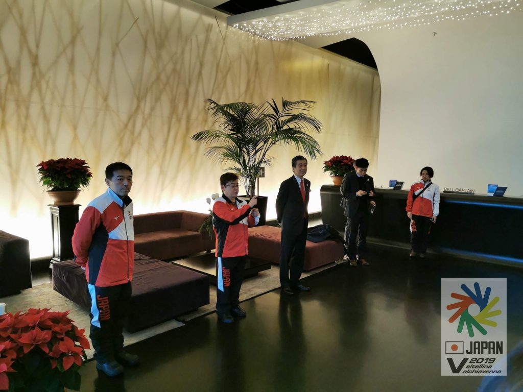 現地時間12月9日(月)、ミラノ・マルペンサ国際空港近くのホテルに、在ミラノ日本国総領事の雨宮 雄治様においでいただきました。 総領事から「2026年冬のオリンピック・パラリンピックが開催される地方で、選手団の皆さんが先に活躍してメダルをたくさん取ってください」とお話いただき、最後は手話も交えて「頑張ってください。応援しています!」と日本選手団に対して心強い激励の挨拶をいただきました。