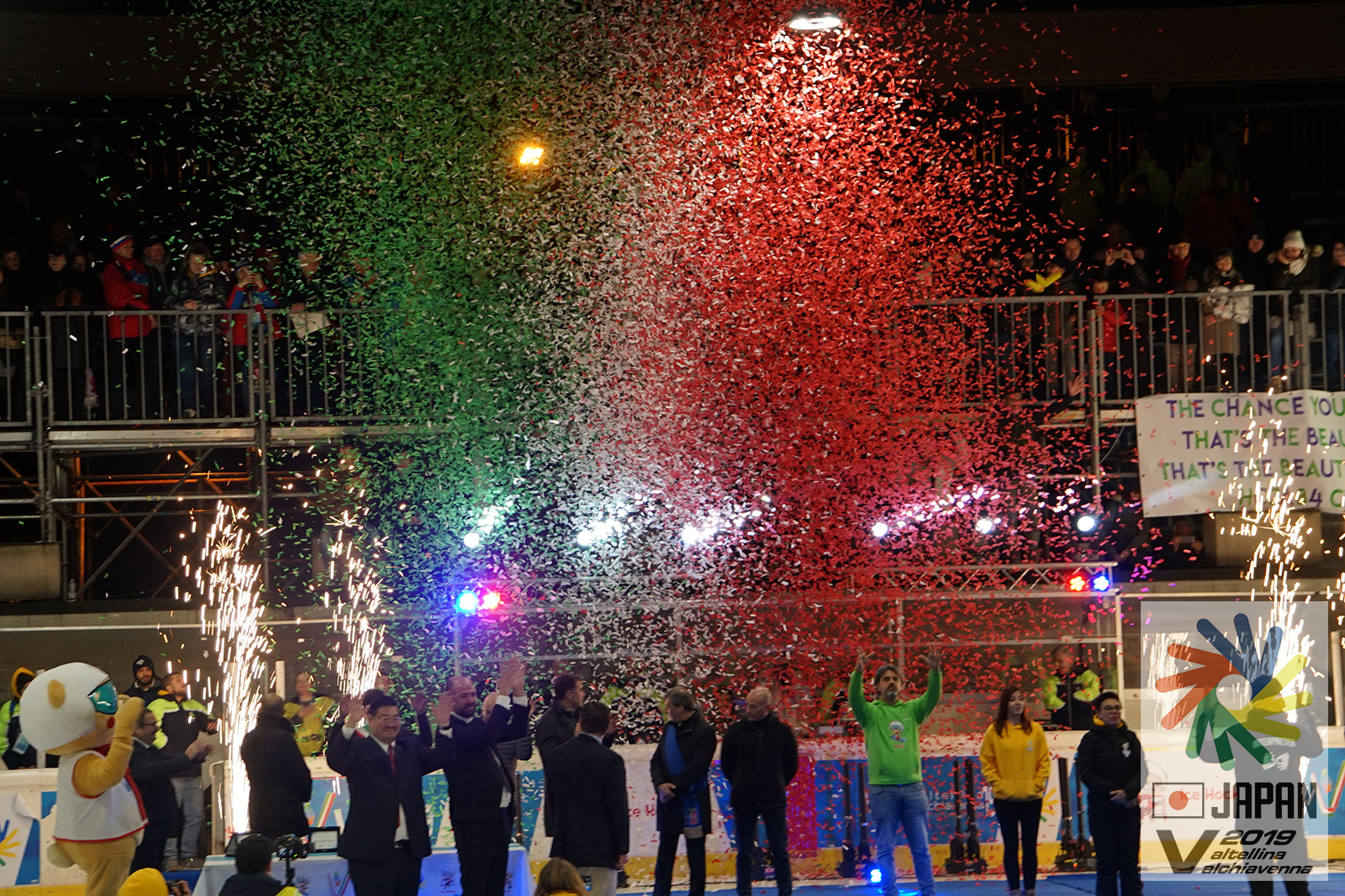 2019年12月23日 / 最終更新日時 : 2019年12月23日 UmezawaHitoshi アルペンスキー 【アルバム】12月21日 閉会式の様子 12月21日(土)18時30分から、キアベンナにあるSports Center Valchiavenna(アイスホッケー会場)で第19回冬季デフリンピック競技大会の 閉会式が開催されました。 (アイスホッケー決勝⇒アイスホッケー表彰式の後に引き続いて開催) その様子をアルバムでお伝えします。 マスコットキャラクター Valleyアイスホッケー決勝 アメリカ対カナダアイスホッケー表彰式の様子閉会式の様子1閉会式の様子2 FacebookXBlueskyCopy